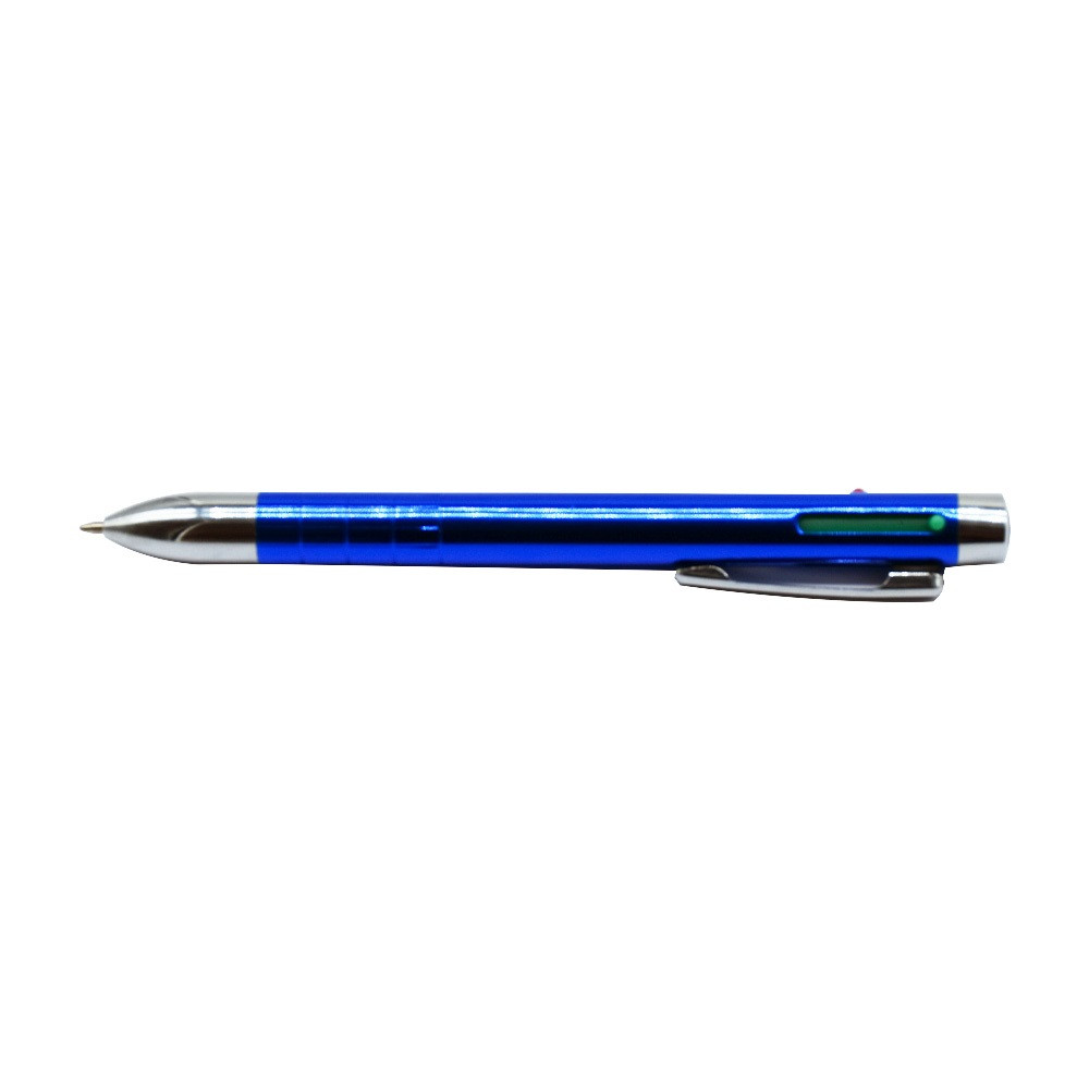 Mechanikus működésű, 4 féle színű (kék, fekete, piros, zöld) cserélhető mini betéttel szerelt golyóstoll. Írásszín: kék, fekete, piros, zöld. Vonalvastagság: 0,8 mm. Íráshossz: 1000 m.