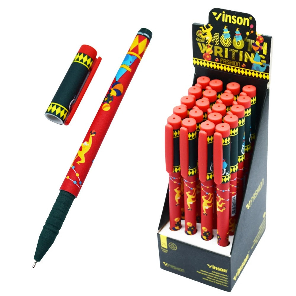 Golyóstoll kupakos, 0,7mm Vinson Circus A4 vegyes test displ 20 db/display