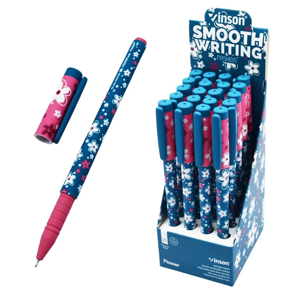 Golyóstoll kupakos, 0,7mm Vinson Flower A18 vegyes test displ 20 db/display