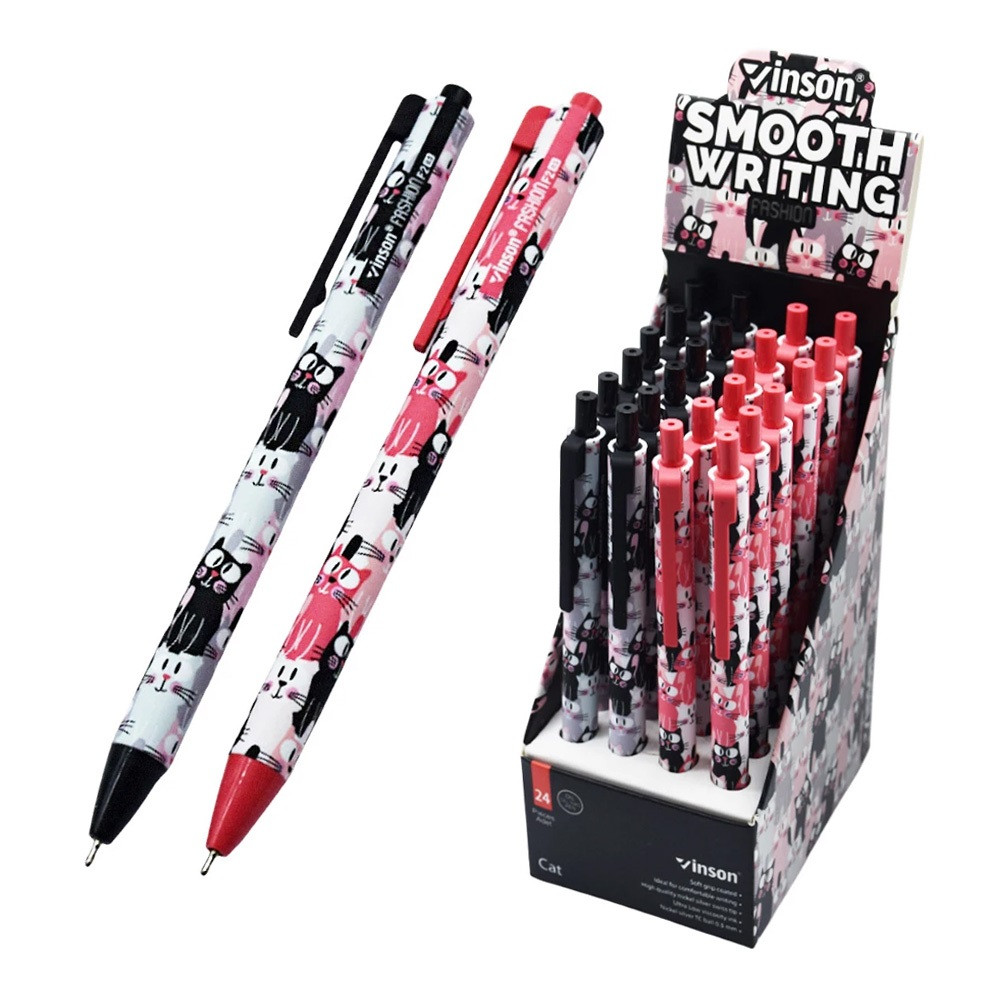 Golyóstoll nyomógombos 0,7mm Vinson Cat F2 vegyes test displ 24 db/display