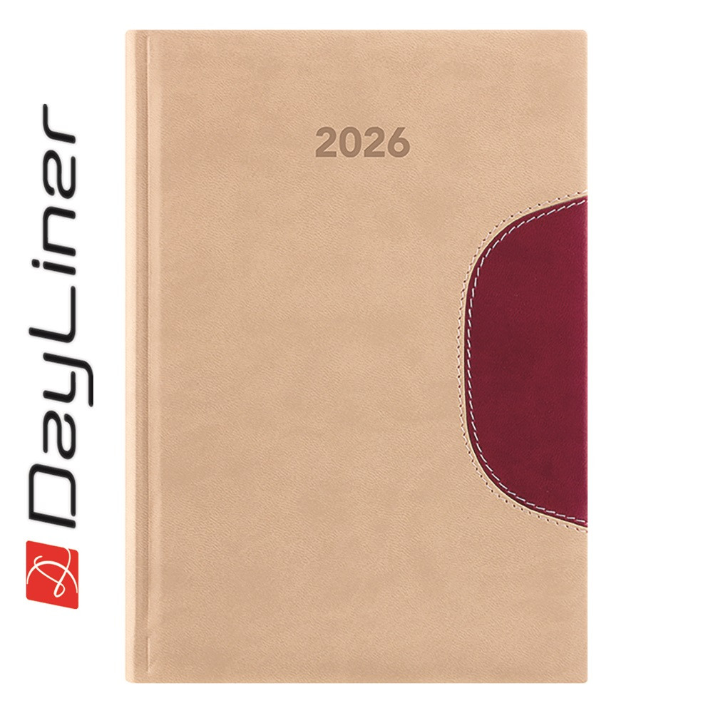 Határidőnapló Memphis A5 napi, fehér lapokkal bézs-padlizsán Dayliner 2026.