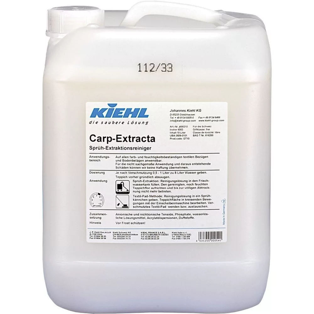 A Kiehl Carp-Extracta egy intenzív szóró extrakciós tisztítószer. Száradás után a Carp Extracta szőnyegtisztító vegyszermaradéka a szőnyegből kiporszívózható.