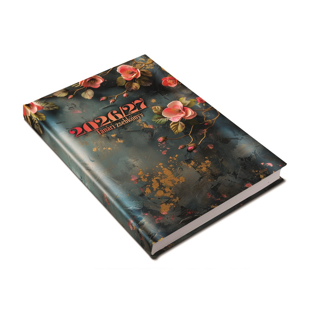 Tanári határidőnapló A5, műbőr 150mmx210mm, fehér lapokkal virágminta 2026/2027 Realsystem