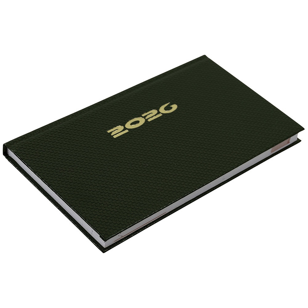 Zsebnaptár fekvő Carbon, fehér lapokkal zöld Realsystem 2026.